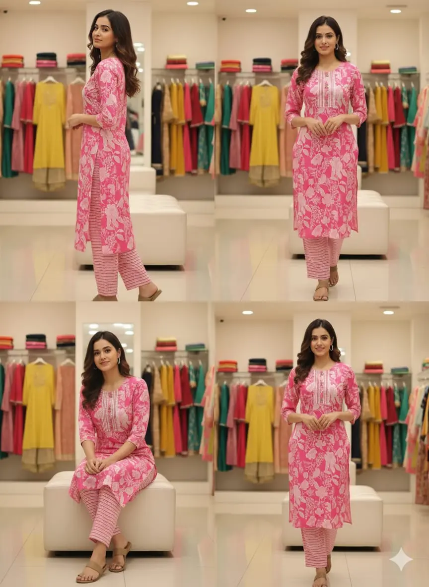 Lucknavi Chikankari Mirror Kurti With Attached Inner